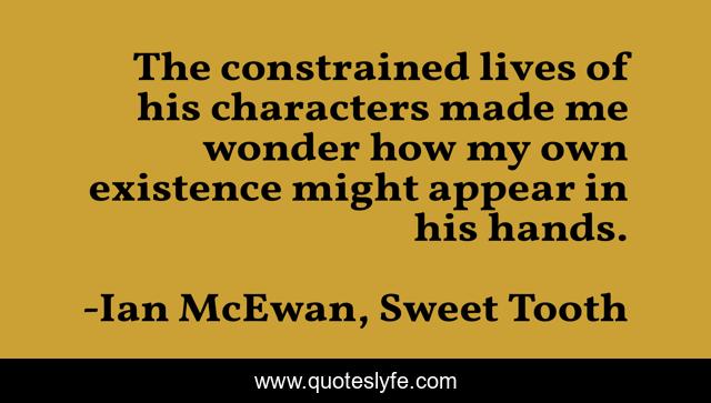 This page presents the quote "The constrained lives of his characters made me wonder how my own existence might appear in his hands.". Author of this quote is Ian McEwan, Sweet Tooth. .