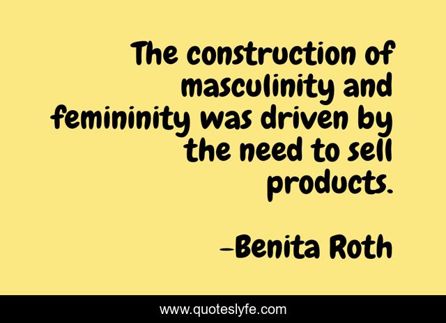 This page presents the quote "The construction of masculinity and femininity was driven by the need to sell products.". Author of this quote is Benita Roth. This quote is about separate-roads-to-feminism, capitalism,.