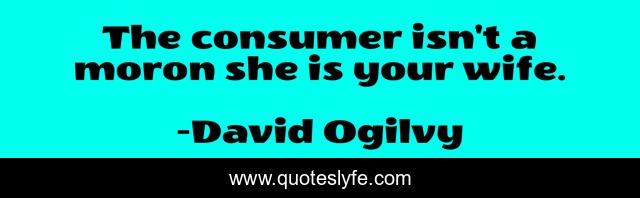 This page presents the quote "The consumer isn't a moron she is your wife.". Author of this quote is David Ogilvy. This quote is about moron, she, wife,.