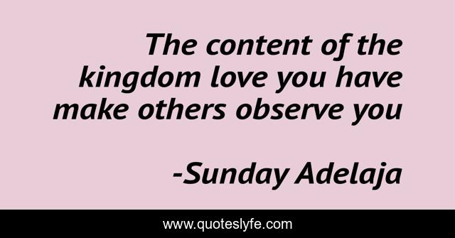 This page presents the quote "The content of the kingdom love you have make others observe you". Author of this quote is Sunday Adelaja. This quote is about content, kingdom, observe, love, affection,.