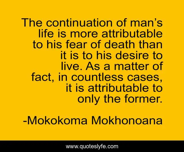 "Mokokoma Mokhonoana Quotes." Quoteslyfe.com, 2025. Sat. 06 Dec. 2025. <https://www.quoteslyfe.com/quote/The-continuation-of-man-s-life-is-46011>.