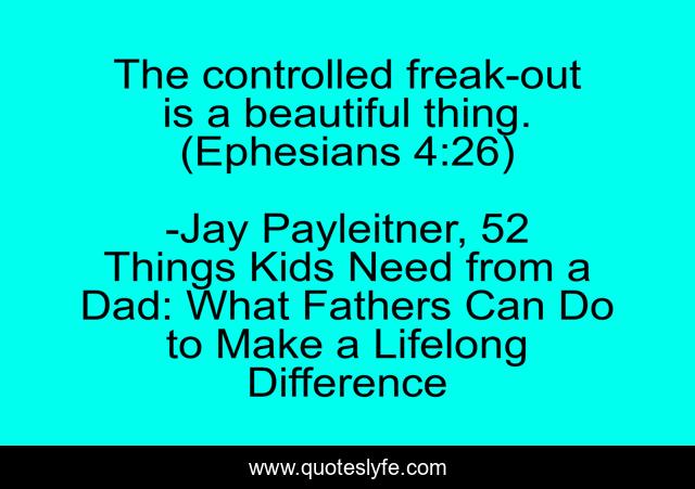 This page presents the quote "The controlled freak-out is a beautiful thing. (Ephesians 4:26)". Author of this quote is Jay Payleitner, 52 Things Kids Need from a Dad: What Fathers Can Do to Make a Lifelong Difference. This quote is about anger, parenting,.