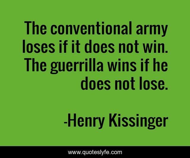 This page presents the quote "The conventional army loses if it does not win. The guerrilla wins if he does not lose.". Author of this quote is Henry Kissinger. .