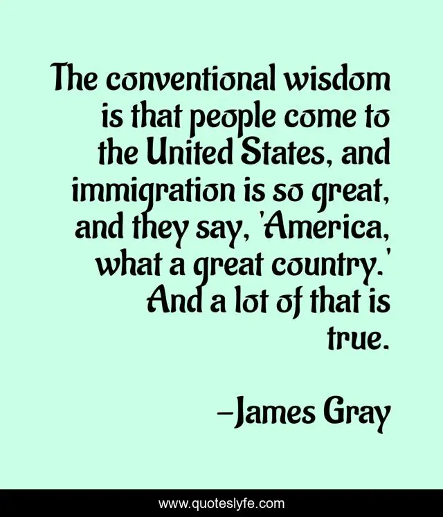 This page presents the quote "The conventional wisdom is that people come to the United States, and immigration is so great, and they say, 'America, what a great country.' And a lot of that is true.". Author of this quote is James Gray. This quote is about great, america, people,.