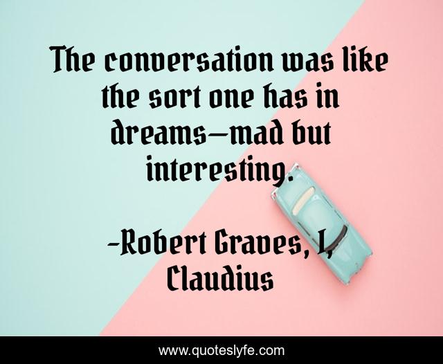This page presents the quote "The conversation was like the sort one has in dreams—mad but interesting.". Author of this quote is Robert Graves, I, Claudius. This quote is about conversation, madness, dreams,.