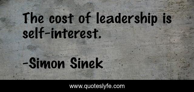 This page presents the quote "The cost of leadership is self-interest.". Author of this quote is Simon Sinek. This quote is about cost, self-interest,.