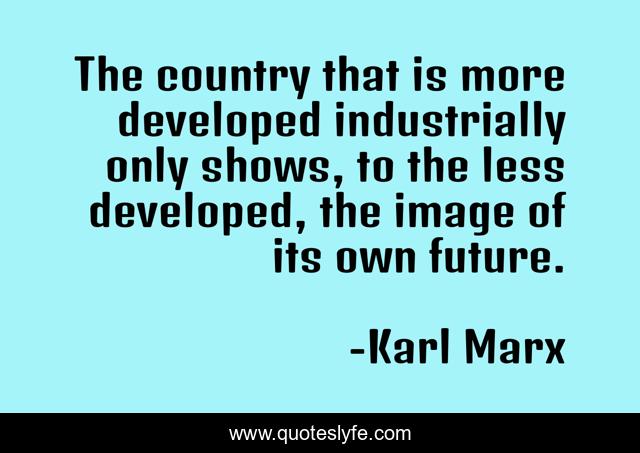 This page presents the quote "The country that is more developed industrially only shows, to the less developed, the image of its own future.". Author of this quote is Karl Marx. This quote is about country, image, own,.