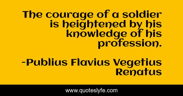 This page presents the quote "The courage of a soldier is heightened by his knowledge of his profession.". Author of this quote is Publius Flavius Vegetius Renatus. This quote is about soldier, courage, profession,.