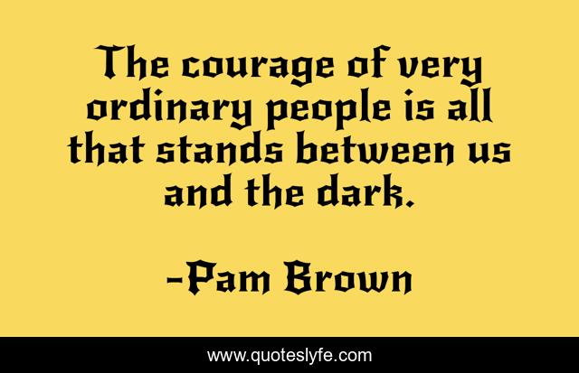 This page presents the quote "The courage of very ordinary people is all that stands between us and the dark.". Author of this quote is Pam Brown. This quote is about dark, people, between,.