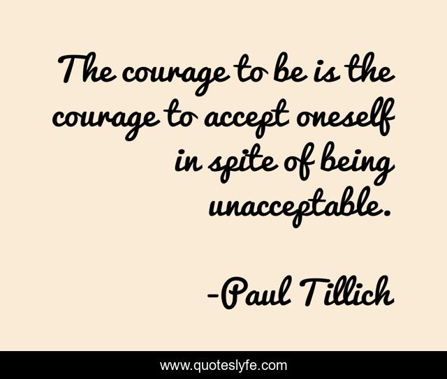 This page presents the quote "The courage to be is the courage to accept oneself in spite of being unacceptable.". Author of this quote is Paul Tillich. This quote is about self, acceptance,.