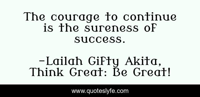 "Lailah Gifty Akita, Think Great: Be Great! Quotes." Quoteslyfe.com, 2025. Fri. 05 Dec. 2025. <https://www.quoteslyfe.com/quote/The-courage-to-continue-is-the-sureness-91738>.