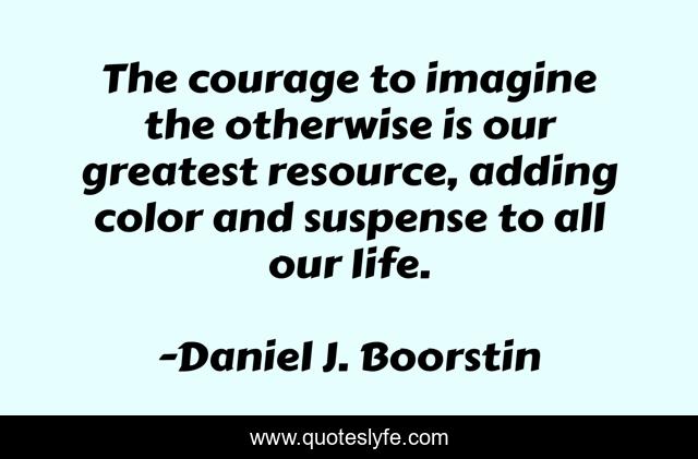 This page presents the quote "The courage to imagine the otherwise is our greatest resource, adding color and suspense to all our life.". Author of this quote is Daniel J. Boorstin. This quote is about color, imagination, life,.