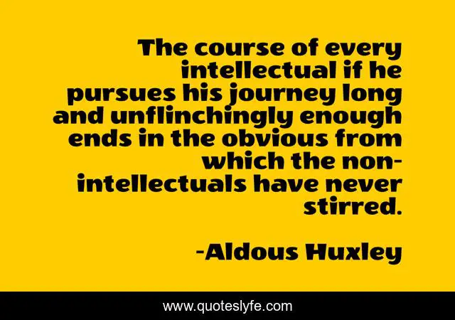 This page presents the quote "The course of every intellectual if he pursues his journey long and unflinchingly enough ends in the obvious from which the non-intellectuals have never stirred.". Author of this quote is Aldous Huxley. .