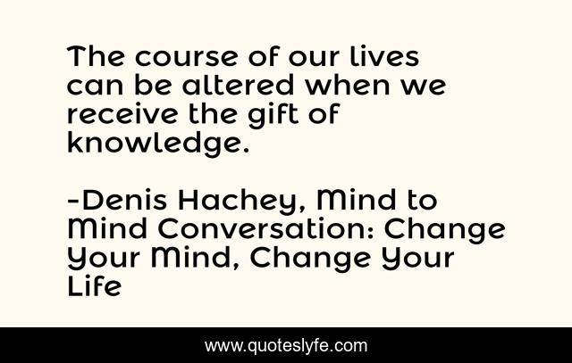 This page presents the quote "The course of our lives can be altered when we receive the gift of knowledge.". Author of this quote is Denis Hachey, Mind to Mind Conversation: Change Your Mind, Change Your Life. This quote is about change-your-life, knowledge, change,.