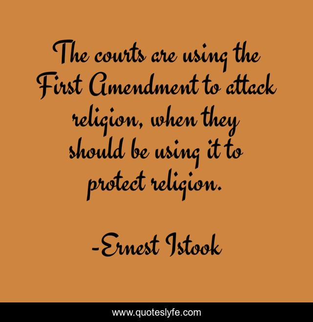 This page presents the quote "The courts are using the First Amendment to attack religion, when they should be using it to protect religion.". Author of this quote is Ernest Istook. This quote is about protect, first amendment,.