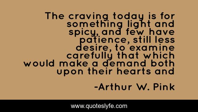 This page presents the quote "The craving today is for something light and spicy, and few have patience, still less desire, to examine carefully that which would make a demand both upon their hearts and". Author of this quote is Arthur W. Pink. .