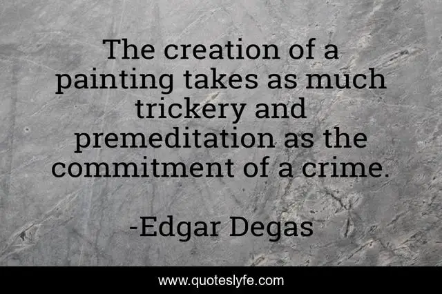 This page presents the quote "The creation of a painting takes as much trickery and premeditation as the commitment of a crime.". Author of this quote is Edgar Degas. .