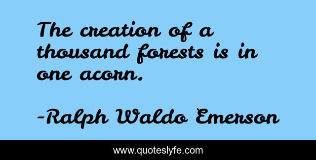 This page presents the quote "The creation of a thousand forests is in one acorn.". Author of this quote is Ralph Waldo Emerson. This quote is about creation, creativity,.