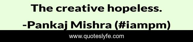 This page presents the quote "The creative hopeless.". Author of this quote is Pankaj Mishra (#iampm). .