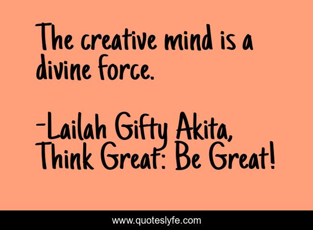 "Lailah Gifty Akita, Think Great: Be Great! Quotes." Quoteslyfe.com, 2025. Mon. 08 Dec. 2025. <https://www.quoteslyfe.com/quote/The-creative-mind-is-a-divine-force-124117>.