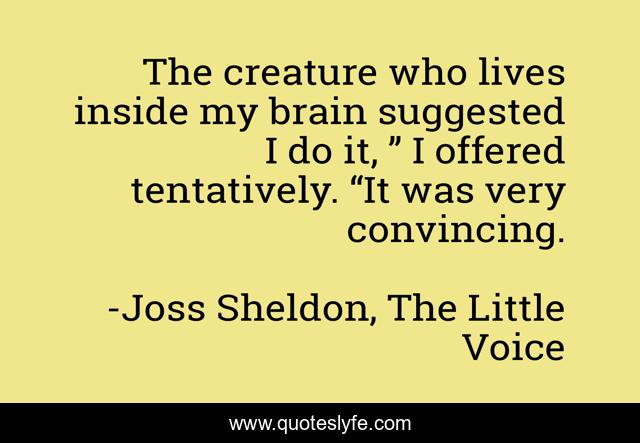 "Joss Sheldon, The Little Voice Quotes." Quoteslyfe.com, 2025. Sat. 06 Dec. 2025. <https://www.quoteslyfe.com/quote/The-creature-who-lives-inside-my-brain-103400>.