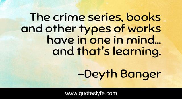 This page presents the quote "The crime series, books and other types of works have in one in mind... and that's learning.". Author of this quote is Deyth Banger. This quote is about mind, learning, learn,.