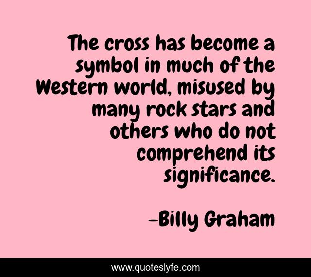 This page presents the quote "The cross has become a symbol in much of the Western world, misused by many rock stars and others who do not comprehend its significance.". Author of this quote is Billy Graham. This quote is about cross, billy-graham,.