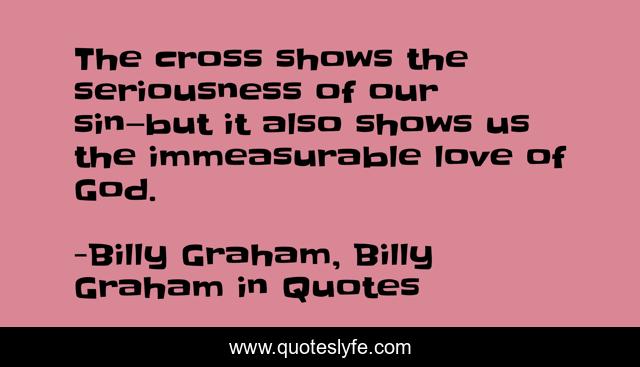This page presents the quote "The cross shows the seriousness of our sin—but it also shows us the immeasurable love of God.". Author of this quote is Billy Graham, Billy Graham in Quotes. This quote is about cross, billy-graham,.