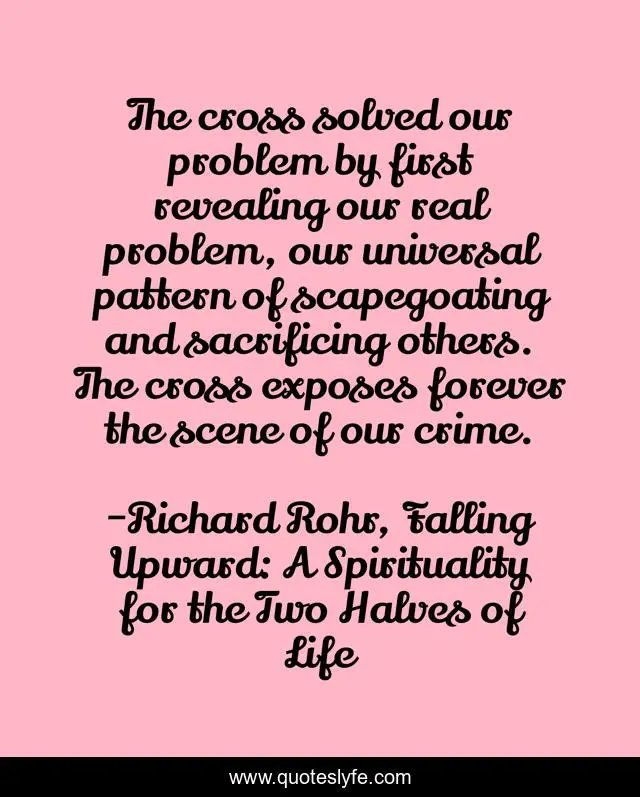 "Richard Rohr, Falling Upward: A Spirituality for the Two Halves of Life Quotes." Quoteslyfe.com, 2025. Sat. 13 Dec. 2025. <https://www.quoteslyfe.com/quote/The-cross-solved-our-problem-by-first-177779>.