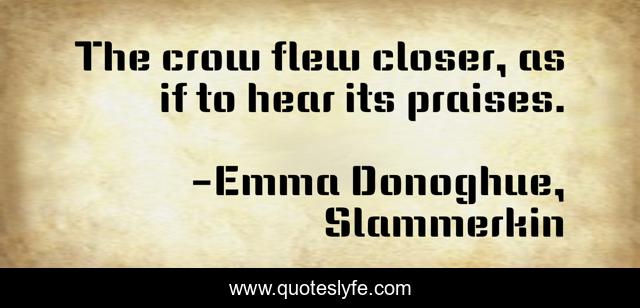 This page presents the quote "The crow flew closer, as if to hear its praises.". Author of this quote is Emma Donoghue, Slammerkin. This quote is about description, birds, nature,.