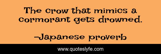 This page presents the quote "The crow that mimics a cormorant gets drowned.". Author of this quote is Japanese proverb. .