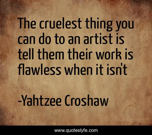 This page presents the quote "The cruelest thing you can do to an artist is tell them their work is flawless when it isn't". Author of this quote is Yahtzee Croshaw. This quote is about flawless, critic, art, truth, artist,.