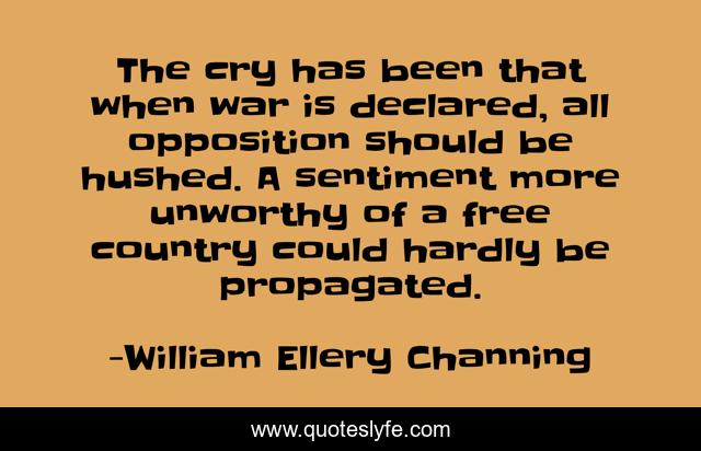 This page presents the quote "The cry has been that when war is declared, all opposition should be hushed. A sentiment more unworthy of a free country could hardly be propagated.". Author of this quote is William Ellery Channing. .