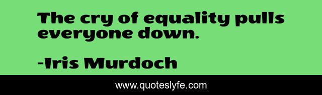 This page presents the quote "The cry of equality pulls everyone down.". Author of this quote is Iris Murdoch. This quote is about down, everyone, cry,.