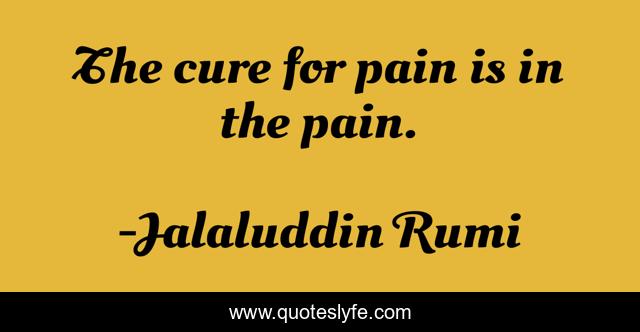 This page presents the quote "The cure for pain is in the pain.". Author of this quote is Jalaluddin Rumi. .