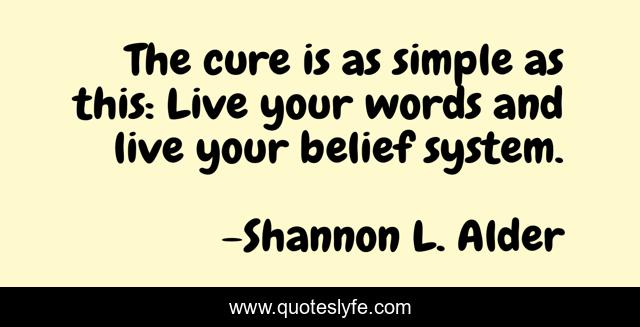 This page presents the quote "The cure is as simple as this: Live your words and live your belief system.". Author of this quote is Shannon L. Alder. This quote is about forgiving-yourself, self-respect, insight, cure, learning, forgiving-others, happiness, genuine, practice-what-you-preach,.