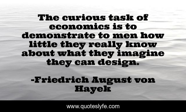 This page presents the quote "The curious task of economics is to demonstrate to men how little they really know about what they imagine they can design.". Author of this quote is Friedrich August von Hayek. This quote is about men, design, economics,.