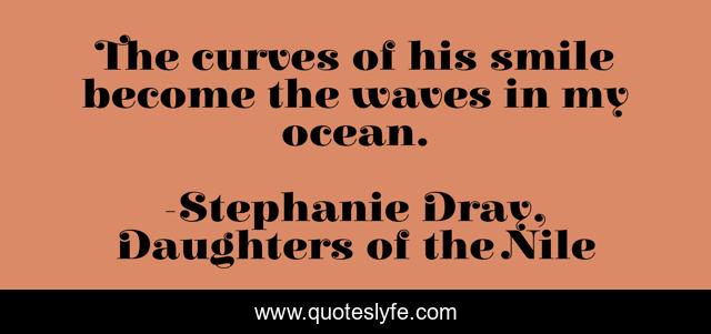 This page presents the quote "The curves of his smile become the waves in my ocean.". Author of this quote is Stephanie Dray, Daughters of the Nile. This quote is about happy, lovers, love, romances, cleopatra-s-daughter, sweet, cleopatra, royals, ocean,.