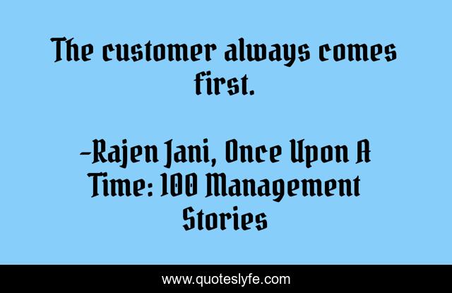 "Rajen Jani, Once Upon A Time: 100 Management Stories Quotes." Quoteslyfe.com, 2025. Sat. 06 Dec. 2025. <https://www.quoteslyfe.com/quote/The-customer-always-comes-first-243751>.