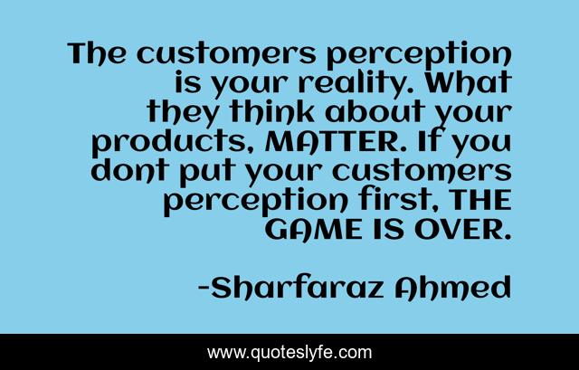 This page presents the quote "The customers perception is your reality. What they think about your products, MATTER. If you dont put your customers perception first, THE GAME IS OVER.". Author of this quote is Sharfaraz Ahmed. This quote is about customer-satisfaction, business,.