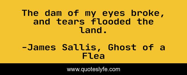 This page presents the quote "The dam of my eyes broke, and tears flooded the land.". Author of this quote is James Sallis, Ghost of a Flea. .