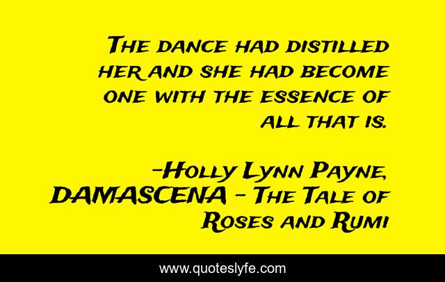 "Holly Lynn Payne, DAMASCENA - The Tale of Roses and Rumi Quotes." Quoteslyfe.com, 2025. Mon. 08 Dec. 2025. <https://www.quoteslyfe.com/quote/The-dance-had-distilled-her-and-she-107526>.