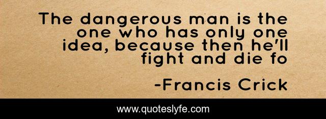 This page presents the quote "The dangerous man is the one who has only one idea, because then he'll fight and die fo". Author of this quote is Francis Crick. This quote is about ideas, zealotry,.