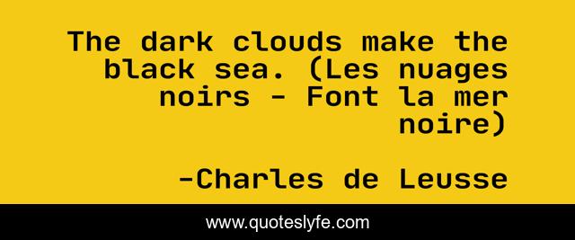 This page presents the quote "The dark clouds make the black sea. (Les nuages noirs - Font la mer noire)". Author of this quote is Charles de Leusse. This quote is about noir, dark, sea, mer, nuage, cloud,.