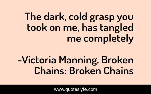 This page presents the quote "The dark, cold grasp you took on me, has tangled me completely". Author of this quote is Victoria Manning, Broken Chains: Broken Chains. This quote is about love, pain, poetry, affection,.