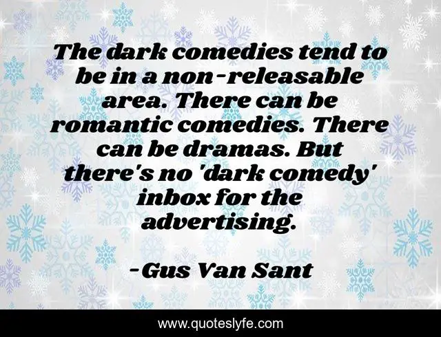 This page presents the quote "The dark comedies tend to be in a non-releasable area. There can be romantic comedies. There can be dramas. But there's no 'dark comedy' inbox for the advertising.". Author of this quote is Gus Van Sant. This quote is about dark, comedy, advertising,.