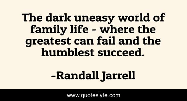 This page presents the quote "The dark uneasy world of family life - where the greatest can fail and the humblest succeed.". Author of this quote is Randall Jarrell. This quote is about ancestry, family,.