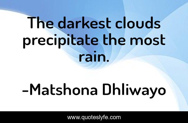 "Matshona Dhliwayo Quotes." Quoteslyfe.com, 2025. Mon. 08 Dec. 2025. <https://www.quoteslyfe.com/quote/The-darkest-clouds-precipitate-the-most-rain-280347>.