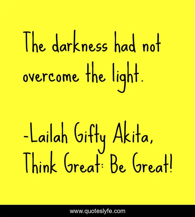 "Lailah Gifty Akita, Think Great: Be Great! Quotes." Quoteslyfe.com, 2025. Mon. 08 Dec. 2025. <https://www.quoteslyfe.com/quote/The-darkness-had-not-overcome-the-light-118590>.