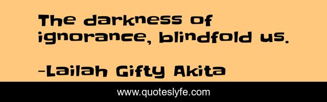 This page presents the quote "The darkness of ignorance, blindfold us.". Author of this quote is Lailah Gifty Akita. This quote is about confidence, darkness, wise-sayings, motivational, ignorance, optimistic, positive, blindfold,.